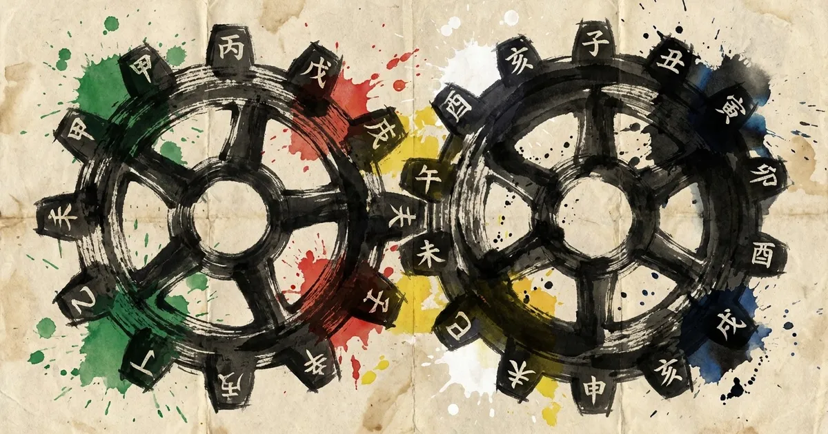 本記事では、「なぜ120ではなく60なのか」という根本的な問いに答えたうえで、60の組み合わせそれぞれに異なる「質」が生まれる仕組みを五行の力学から解説します。六十干支の全一覧は> 60干支早見表で、個々の象意については> 干支の意味とは?で扱っています。本記事は「仕組みの理解」に特化した内容です。