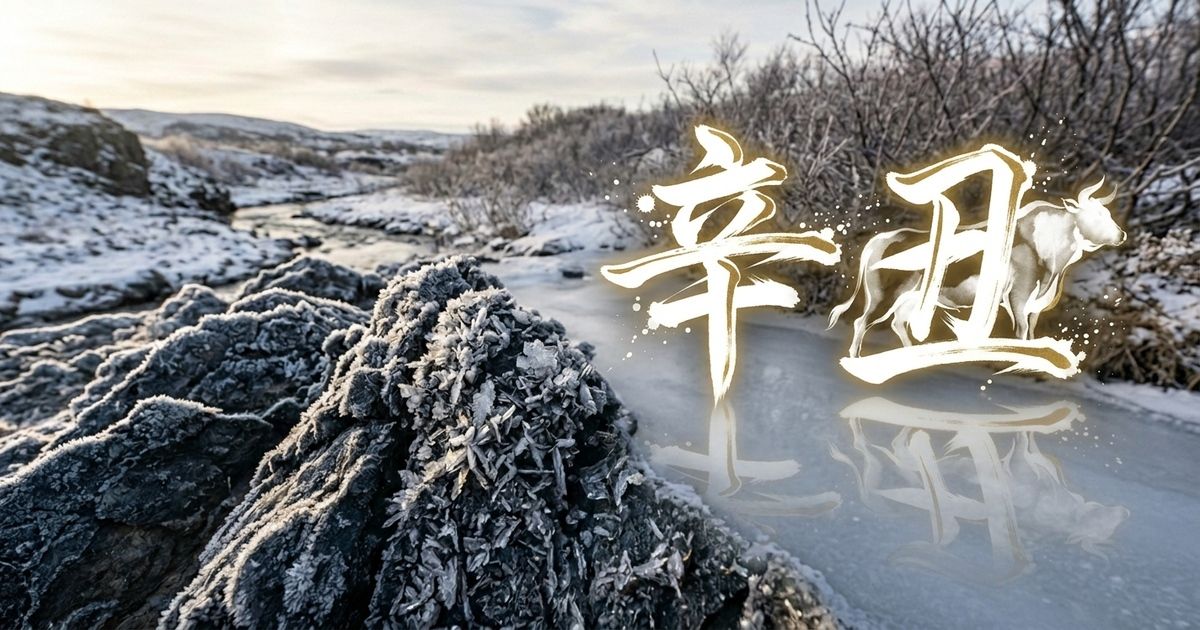 一つ目は五行の相生関係「土生金」。土は金を生む。大地の中で鉱石が形成されるように、丑(土)は辛(金)を育て、支える。辛丑の人が持つ内なる宝石は、丑の大地によって守られ、じっくりと磨かれていくのだ。