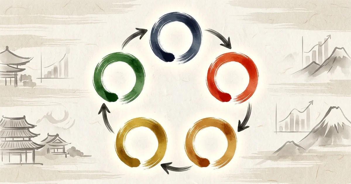 木は火を生み、火は土を生む。一方、木は土に剋ち、土は水に剋つ。たとえば火属性のメンバーばかりのプロジェクトは瞬発力に優れるが、ブレーキが効かない。そこに水属性の人材を加えると、バランスが生まれる。五行の相生相剋を組織マネジメントに活かす方法では、具体的な編成パターンを紹介している。来週のミーティングで、チームメンバーの五行属性を書き出してみるだけでも、新しい気づきが得られるはずだ。